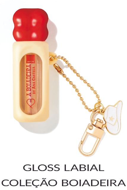 Possui um mix de ingredientes que ajuda a manter a hidratação dos lábios. Com cor neutra e partículas brilhantes, o Avon Gloss Labial “A Boiadeira by Ana Castela” pode ser usado sozinho ou por cima do batom para você arrasar em todas as ocasiões quando sua rotina vira um palco. O item contém ainda uma capa de silicone que pode ser usada como chaveiro, além de trazer um pingente em formato de chapéu ou bota.