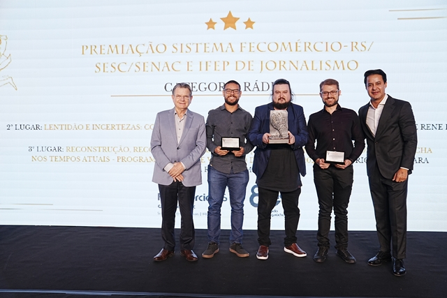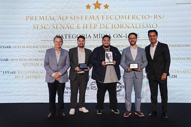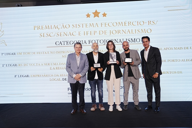O Sistema Fecomércio-RS anunciou nesta segunda-feira, dia 10 de novembro, os vencedores do 1º Prêmio Sistema Fecomércio-RS/Sesc/Senac e IFEP de Jornalismo. Ao todo, 16 trabalhos foram premiados em categorias que reconhecem a produção jornalística sobre o comércio de bens, serviços e turismo e seu papel no desenvolvimento econômico e social do Estado. A cerimônia de premiação aconteceu na sede da Fecomércio-RS, em Porto Alegre.